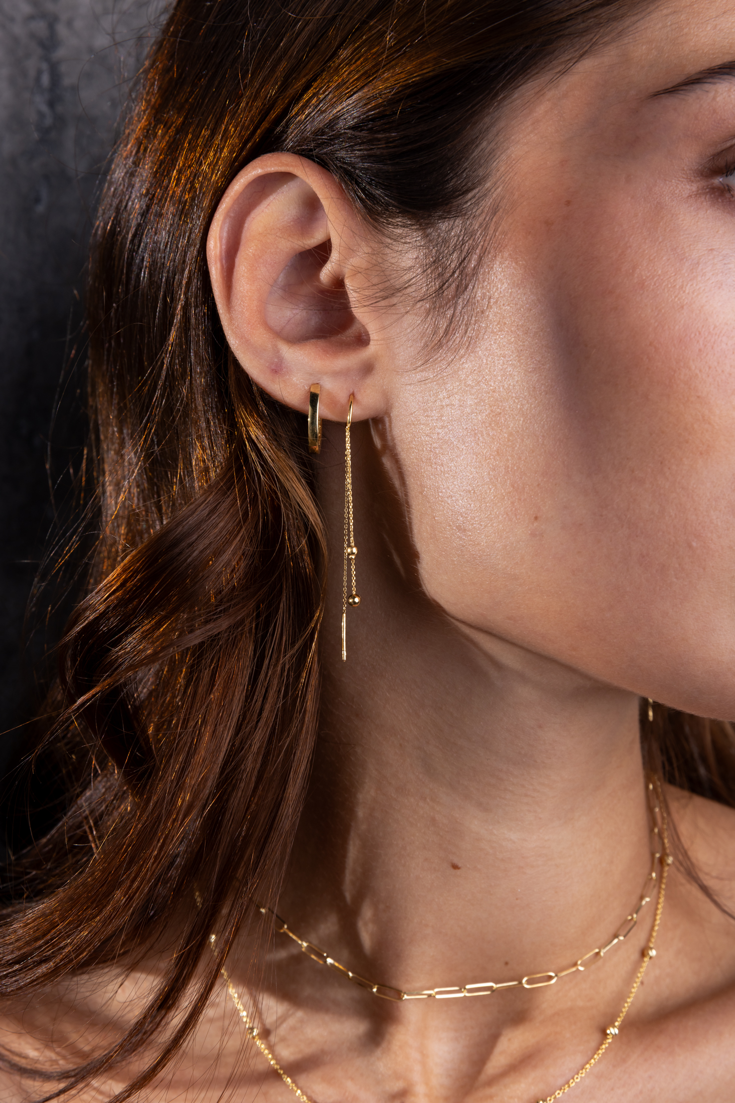 Orecchini modello creola a scatto in oro 18kt con catena veneziana morbida pendente